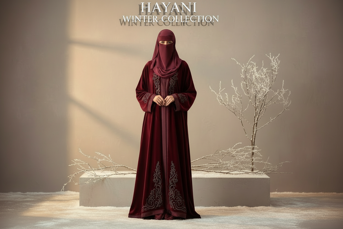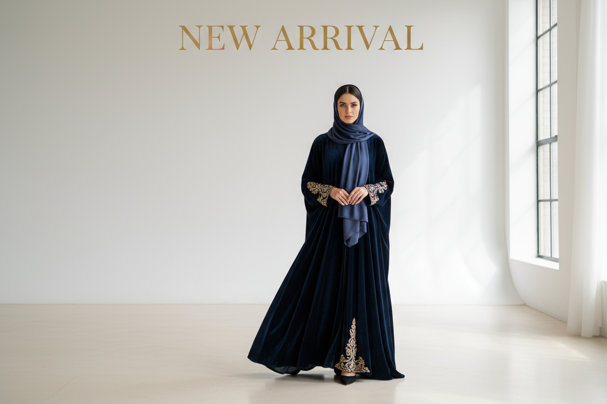 Embrace sophisticated modesty with the Haleema Geometric Grace Abaya Set, a design that beautifully marries timeless elegance with contemporary detailing. This exquisite 3-piece set ensures full coordination and convenience, featuring an Inner Slip, the flowing Upper Abaya, and a matching Stole/Head (Hijab).