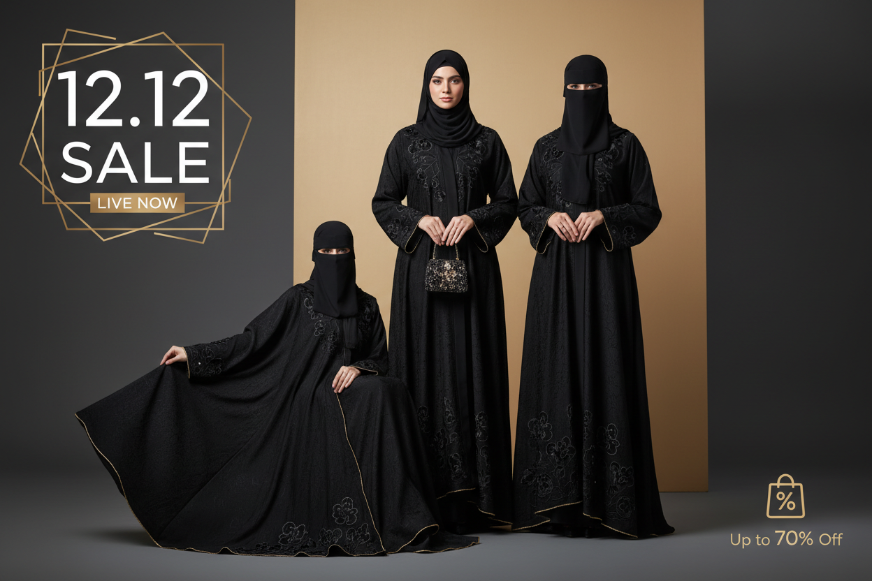 Set Components 3-Piece: Inner Slip, Upper Abaya (Outer), Stole (Hijab)